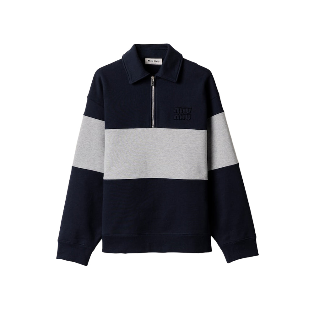 미우미우 하프 집업 스트라이프 스웨트셔츠(국내배송)