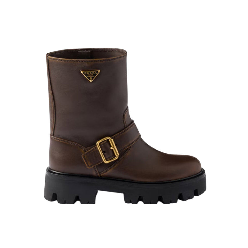 프라다 버클 스크랩 가죽부츠 브라운