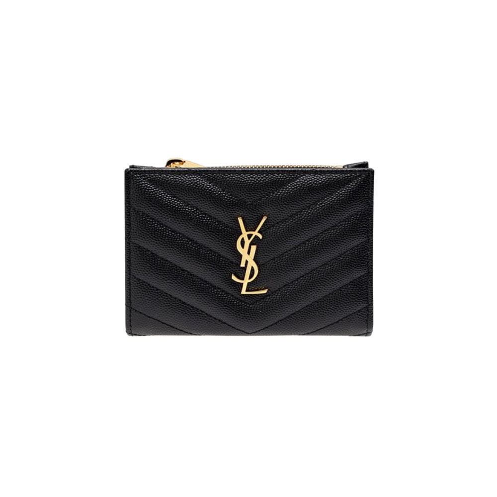 생로랑 금장 모노그램 지퍼 반지갑 블랙